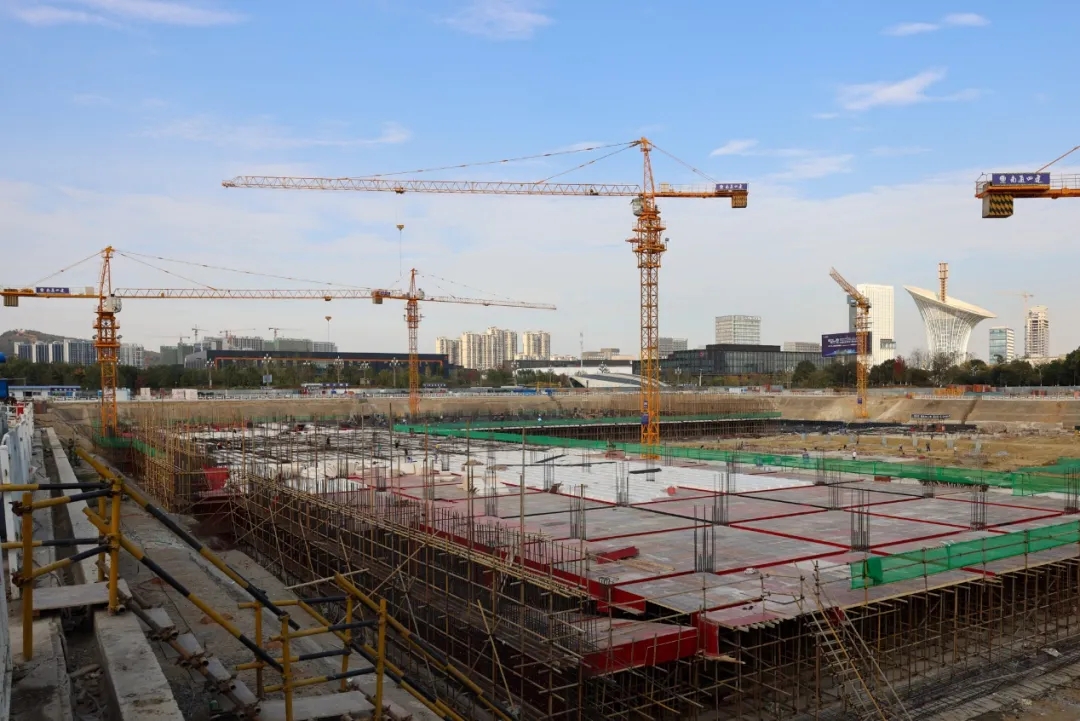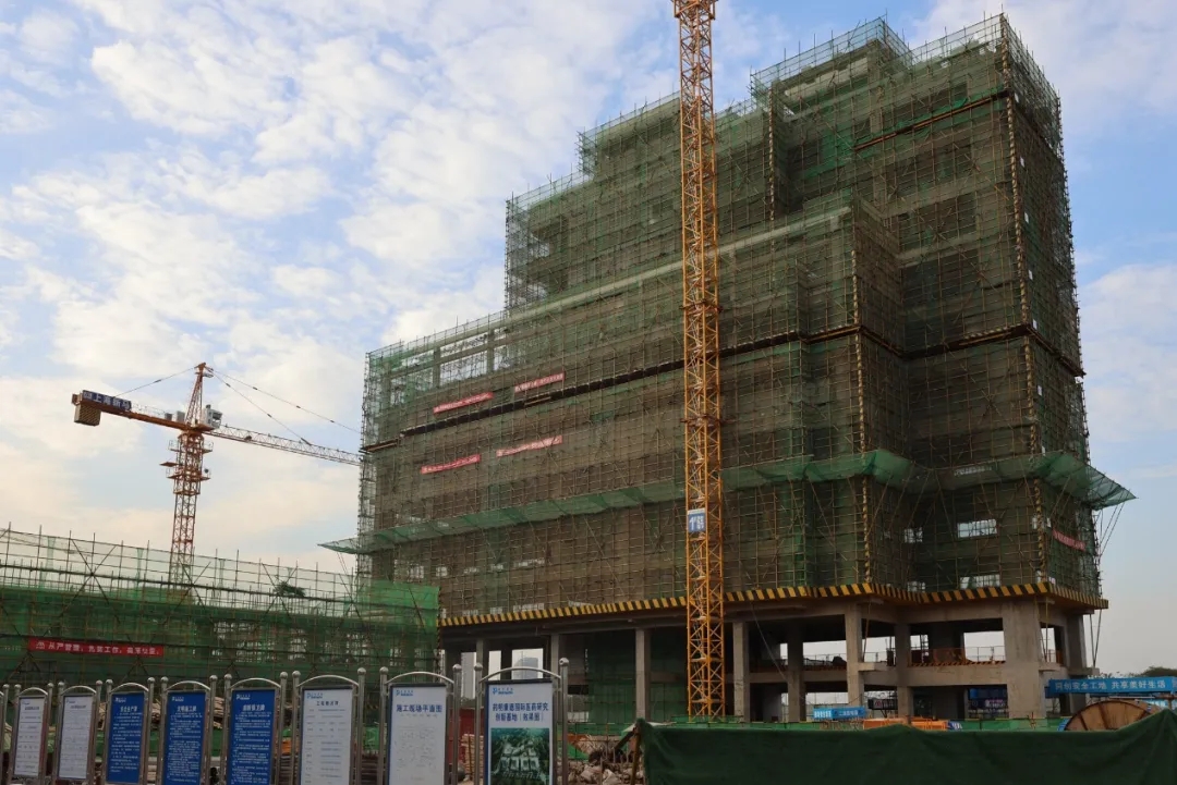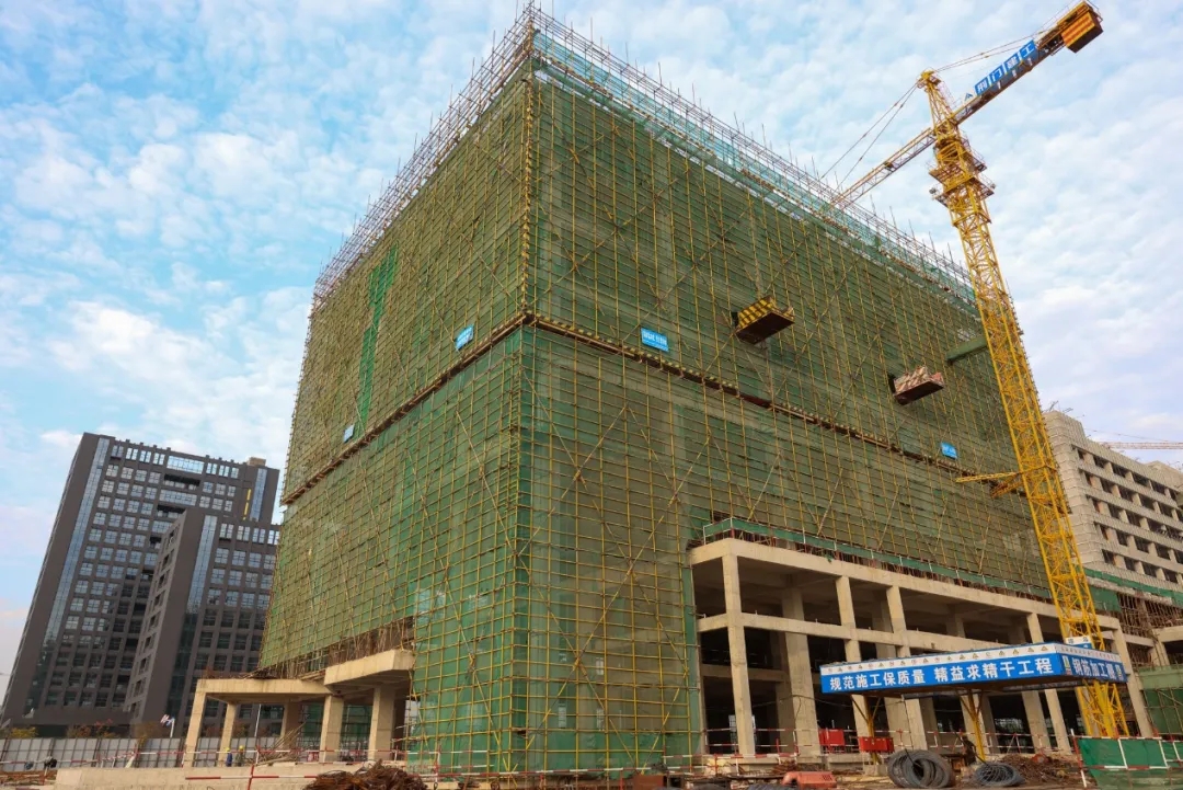 藥明康德華中總部基地項目在原來武漢基地的基礎上,進一步擴大產能、提升效率,打造全球領先的藥物化學和新興化學技術平臺。項目于2021年3月開工,總建筑面積約20.9萬平方米,目前正在進行土建主體施工,多棟建筑已封頂。