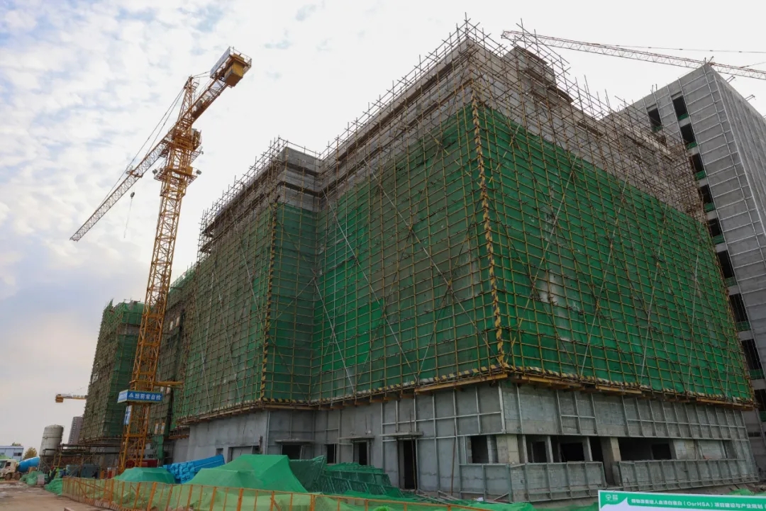 禾元生物生產基地項目總建筑面積約7.2萬平方米,包括植物分子醫藥研究院、中試車間以及一條年產10噸(100萬支)、高度智能化的植物源重組人血清白蛋白生產線。項目于2021年2月動工建設,目前綜合樓、中試樓、制劑樓已經封頂。