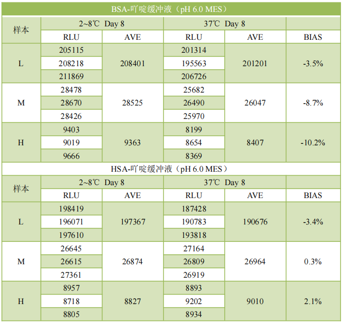 測試例3:禾優?OsrHSA與BSA對吖啶反應試劑的稀釋穩定對比