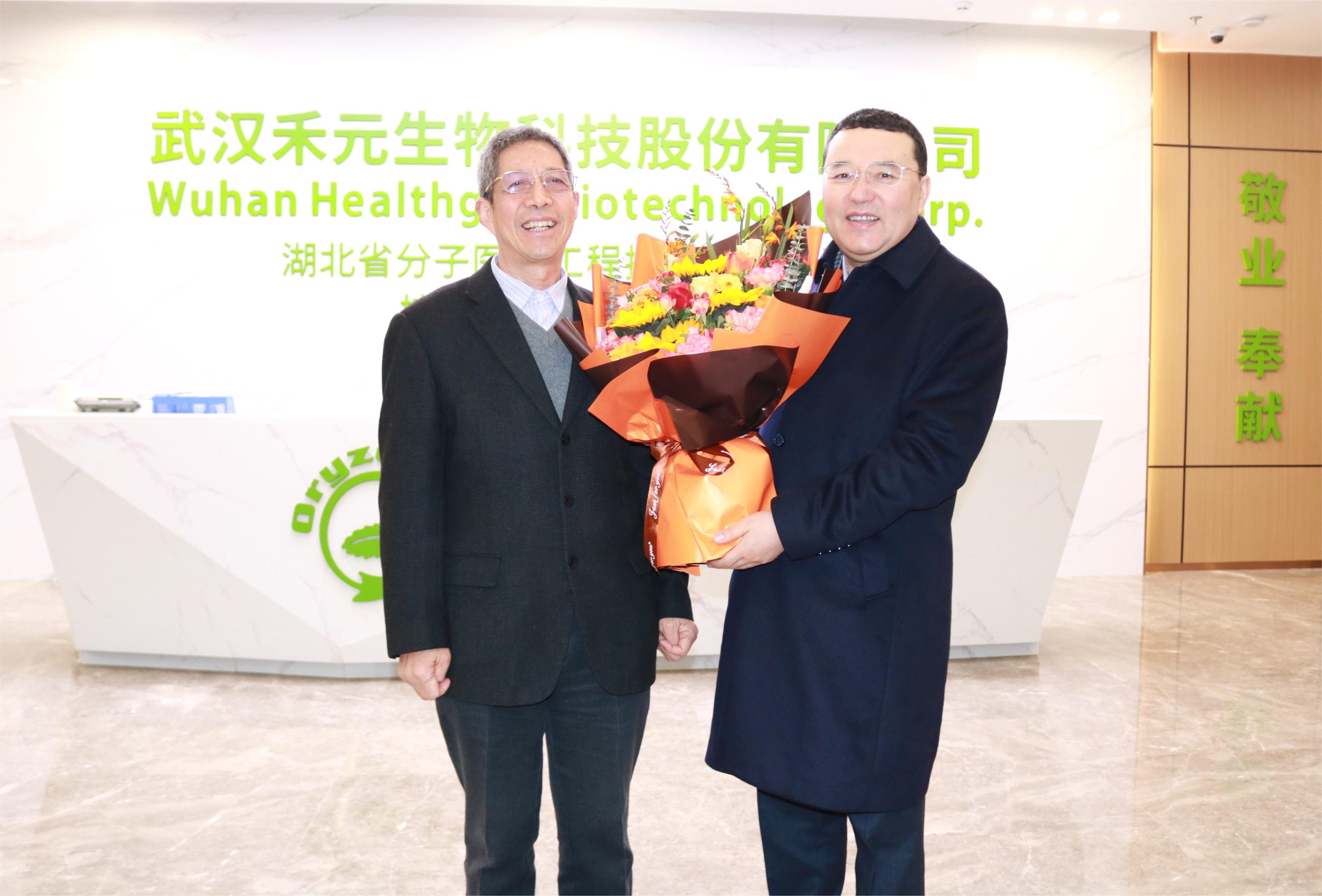 2023年12月14日上午,湖北省政協黨組副書記、副主席爾肯江·吐拉洪,省政協常務委員董永祥一行蒞臨禾元生物調研指導工作,聽取公司董事長兼總經理楊代常教授工作匯報。