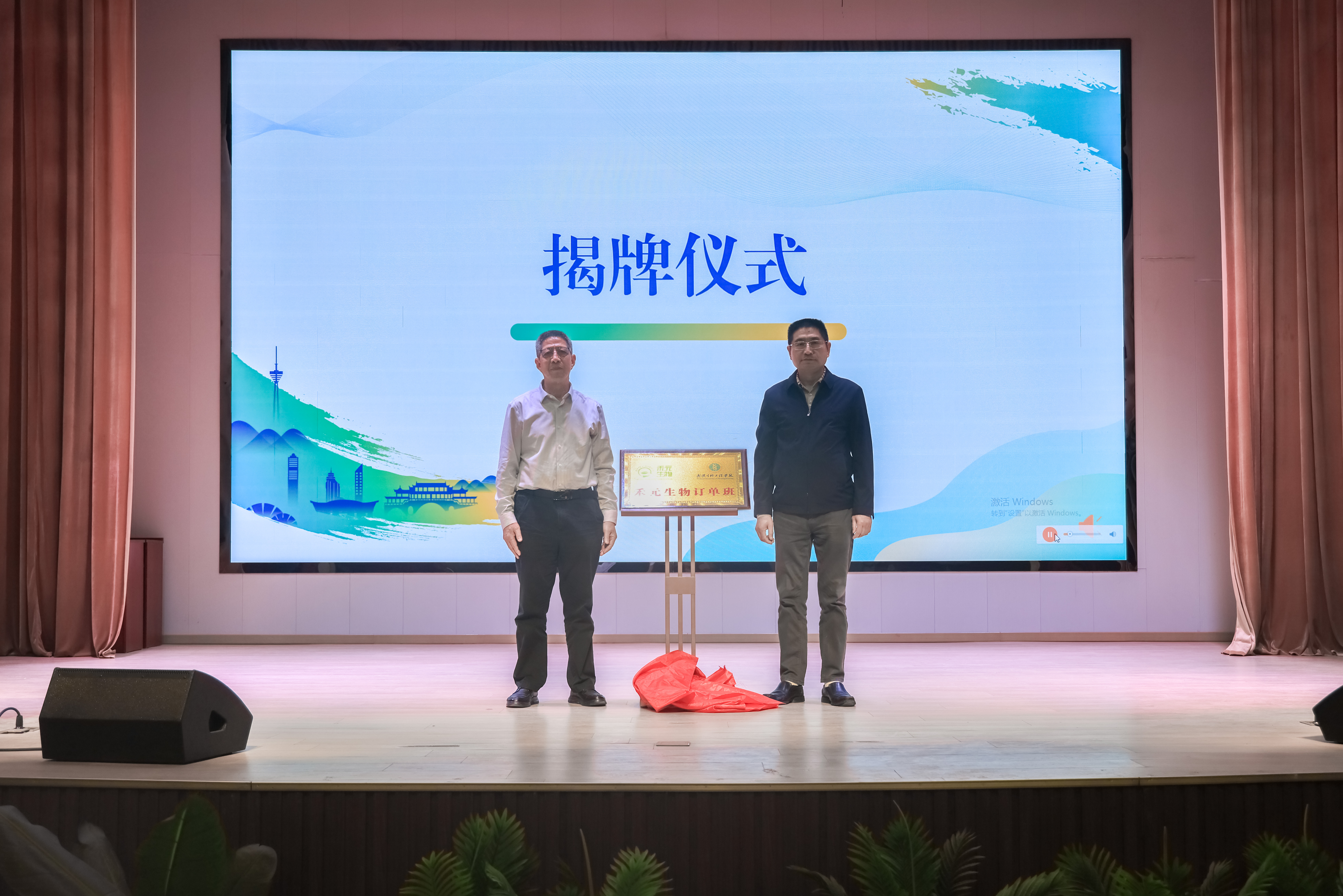 江珩(圖右)與楊代常(圖左)共同為“禾元生物訂單班”揭牌