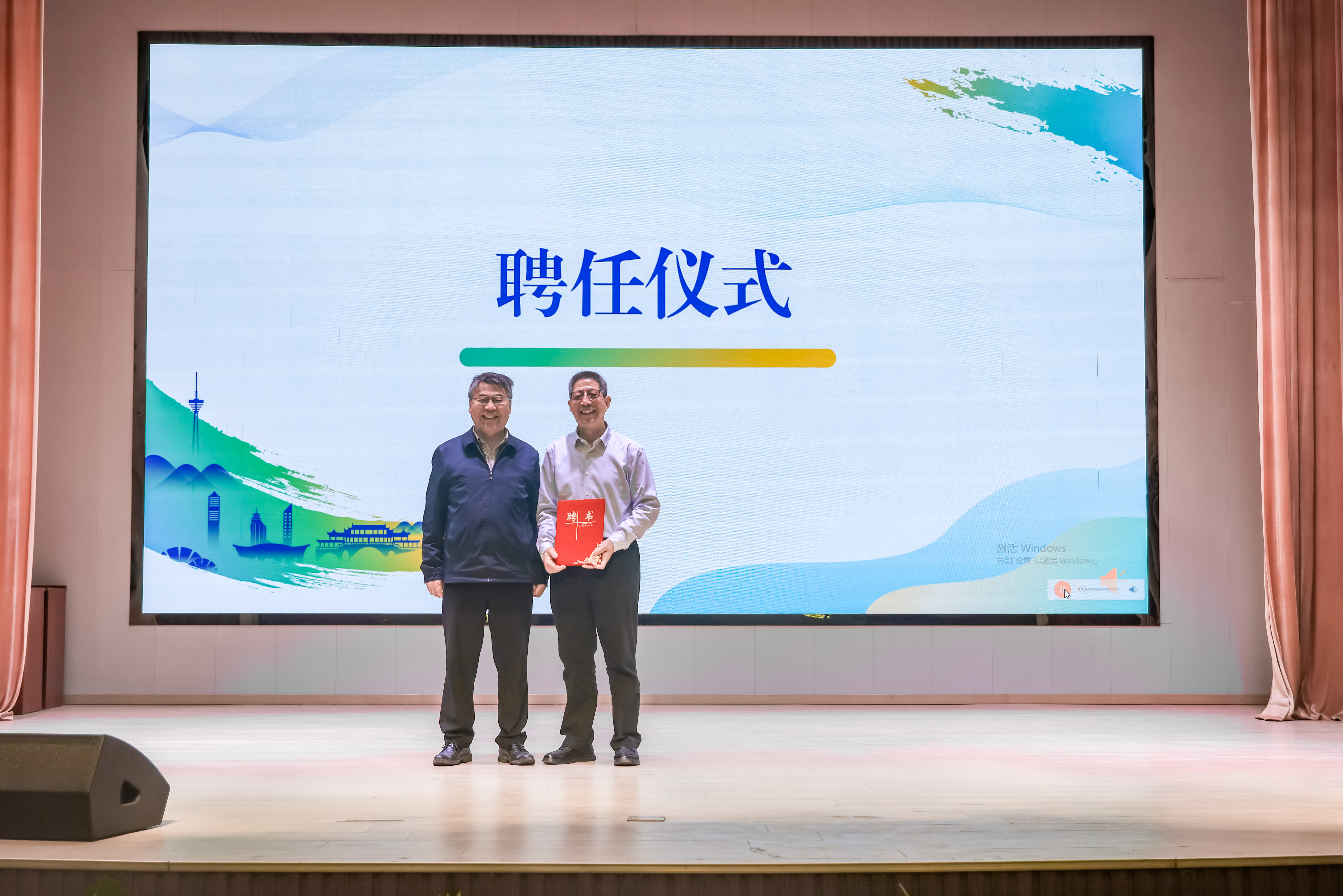 學(xué)校顧問(wèn)顧豪爽(圖左)為楊代常(圖右)頒發(fā)客座教授聘書