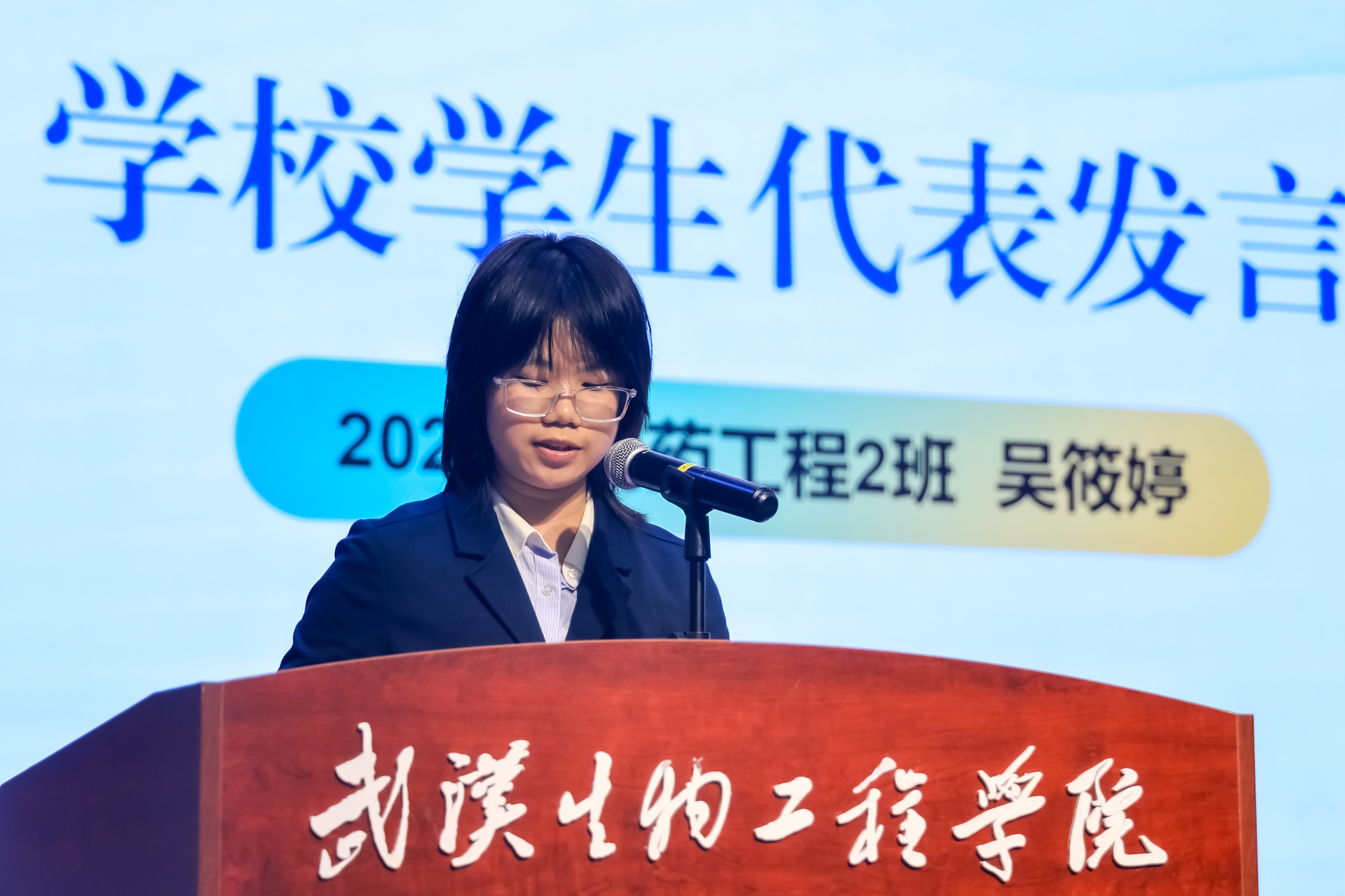 2022級(jí)制藥工程2班吳筱婷同學(xué)作為學(xué)生代表發(fā)言